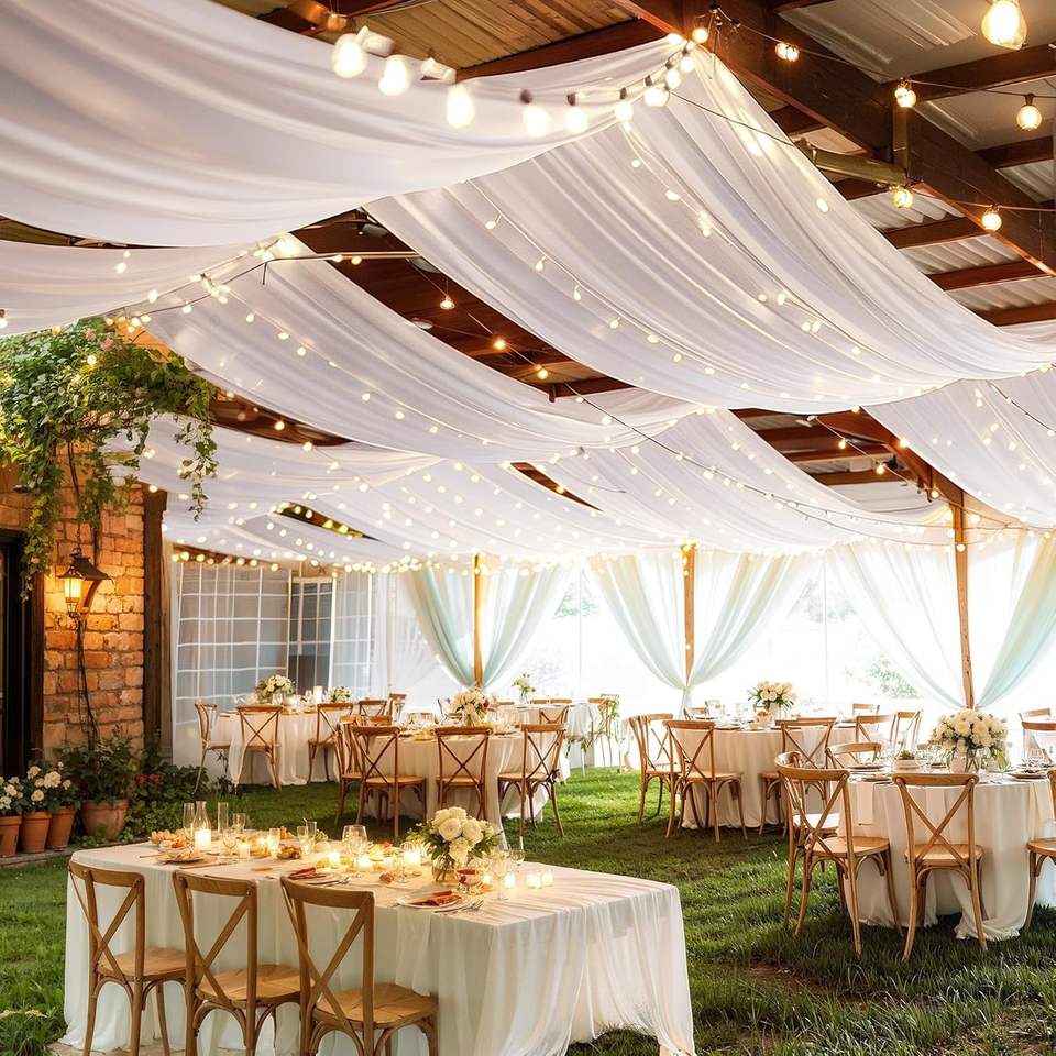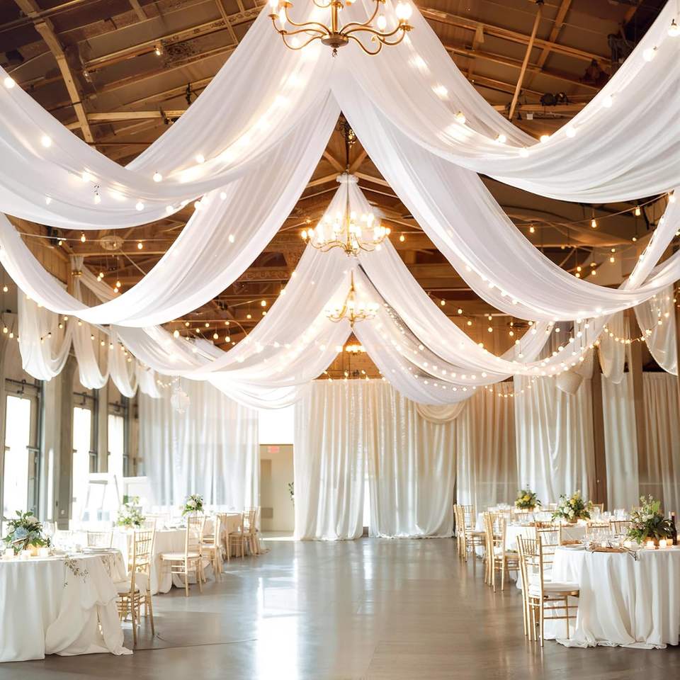 Rideaux de plafond blancs pour mariage, rideau en mousseline de soie en tissu transparent pour décoration de fête
