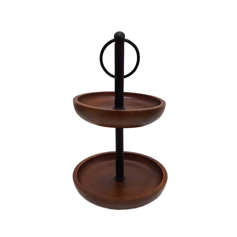 Support à gâteau à 2 étages en métal et en bois pour mariage et anniversaire, finition naturelle et noire, forme ronde pour la décoration des fêtes à domicile
