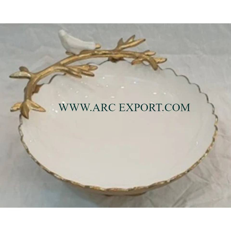 Bol de serveur de table de décoration de mariage et d'événements vente en gros de forme ronde en métal laiton couleur blanche grand bol de dattes de fantaisie