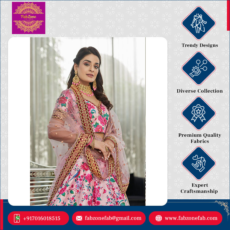 Vêtements de mariage et de fête Design accrocheur Vente en gros Vêtements ethniques indiens Lehenga Choli en soie pour les acheteurs en gros
