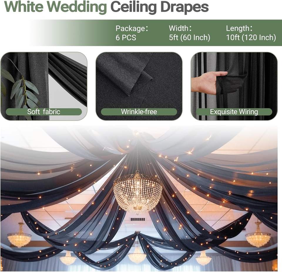 Weddings CeilingDrapes Wedding Photo Backgrounds Sheer Curtains Tulle Tent Drapery Wedding Decorations for Party Ceremony Stage
