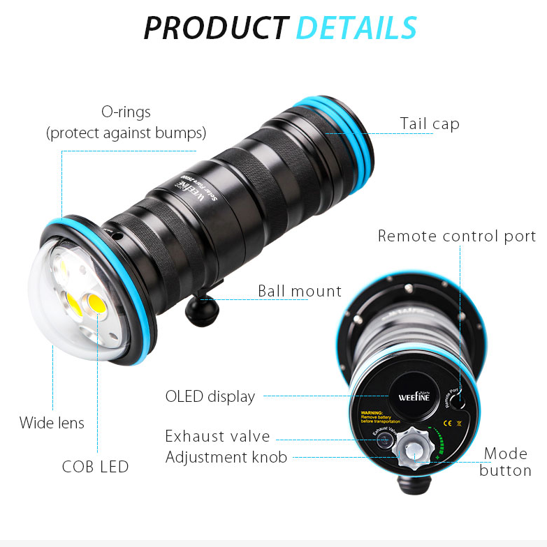 Weefine WF075 Mode stroboscopique Équipement de plongée Solar Flare 25000 lumens source de lumière multi-COB latérale 160 lampe sous-marine à distance grand angle