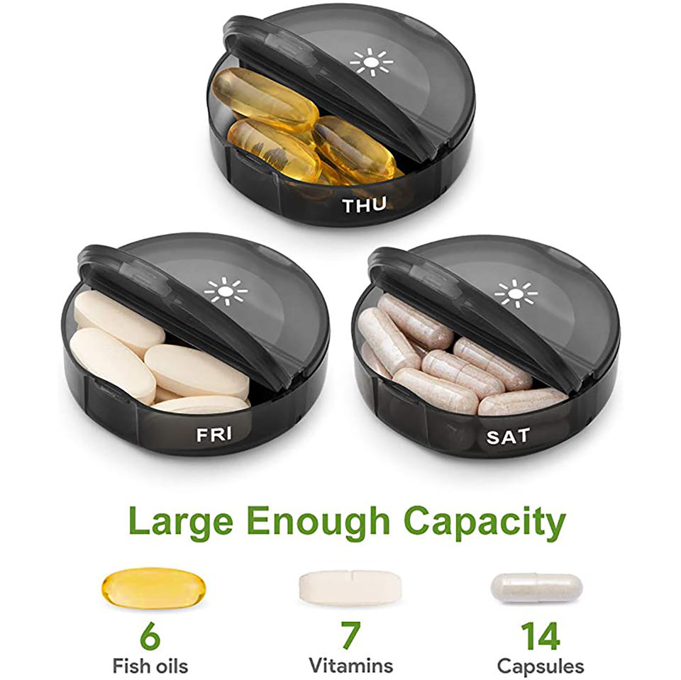 Pilulier médical, organisateur de pilules hebdomadaire 7 jours 2 fois a jour, grands piluliers quotidiens pour pilules/vitamines/huile de poisson/complément (boîte noire)