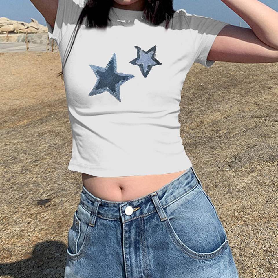 Tops courts graphiques Y2K Weetiotio pour femmes, t-shirts courts vintage, esthétique, débardeurs d'été pour adolescentes