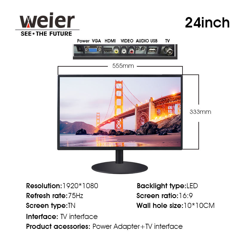 Moniteur Weier 23,8 pouces Écrans Ordinateur de bureau Matériel d'affichage PC Moniteurs de jeu