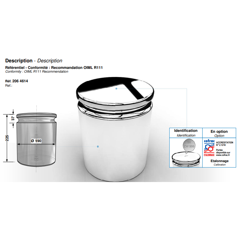 Poids de métrologie INOX OIML monobloc de 50kg - Classe F1