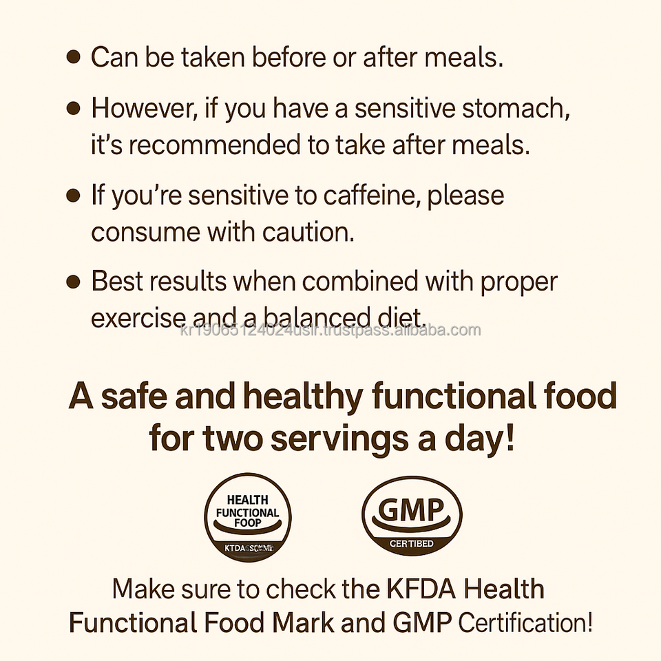 Boisson instantanée coréenne OEM Poudre de café de contrôle du poids avec ingrédients fonctionnels pour le soutien énergétique