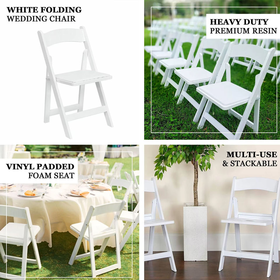 Chaise pliante ergonomique en résine blanche avec dossier en arc, rembourrée, pour mariages, fêtes et événements, sièges temporaires