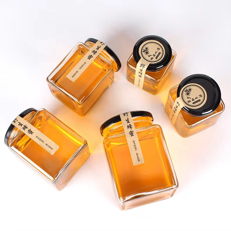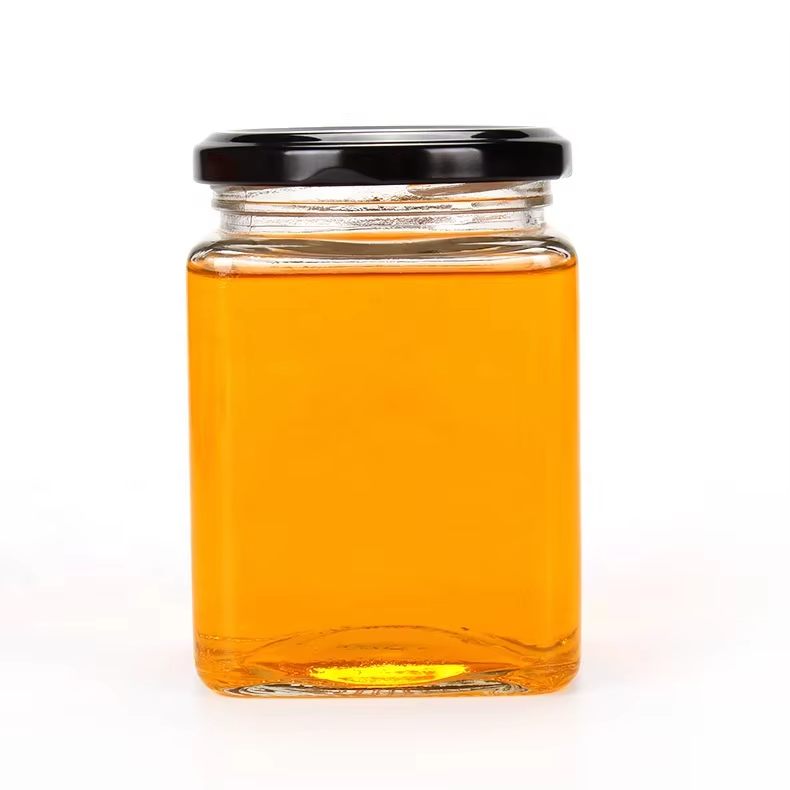 Pots en verre carrés de miel avec le pot de cornichons de stockage de couvercle en métal pour la nourriture