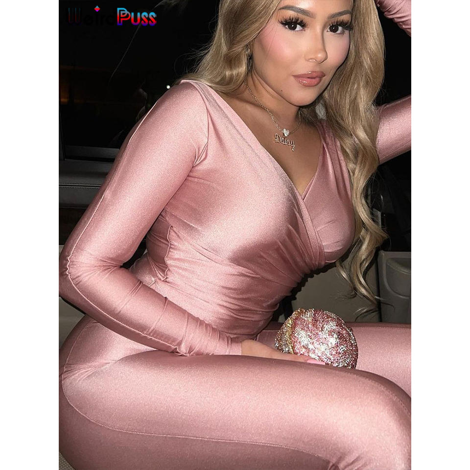 Weird Puss Elegant Women Tracksuit 2 Piece Set Skinny Cross Slash Neck Crop Tops+Leggings Stretch Matching Streetwear Outfits -