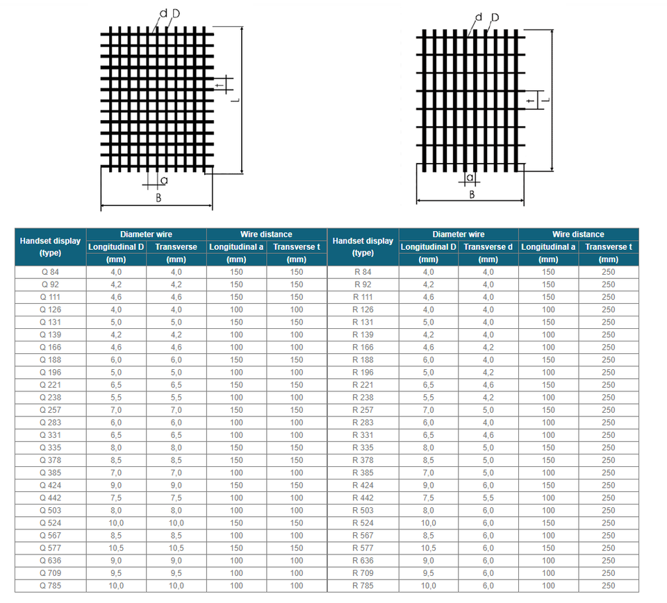 Diamètre du fil:1'' x 1'', 2'' x 2'' etc.