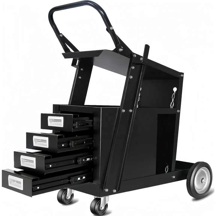 Chariot durable pour découpeur de plasma Chariot de soudage à quatre tiroirs pour le stockage des câbles et des bouteilles de gaz Chariots de soudage Chariot pour machine à souder