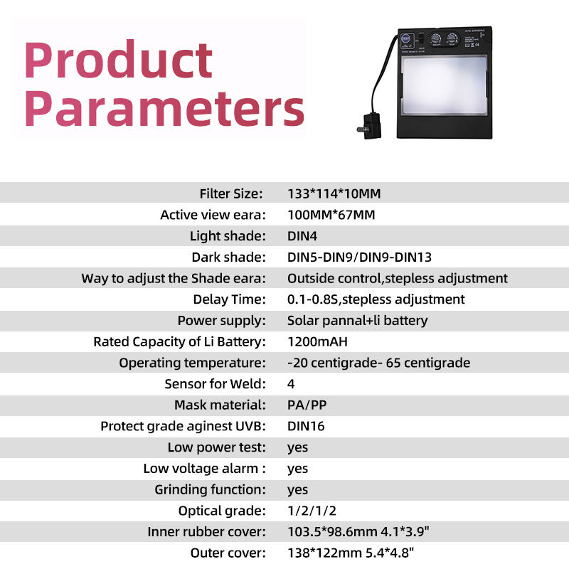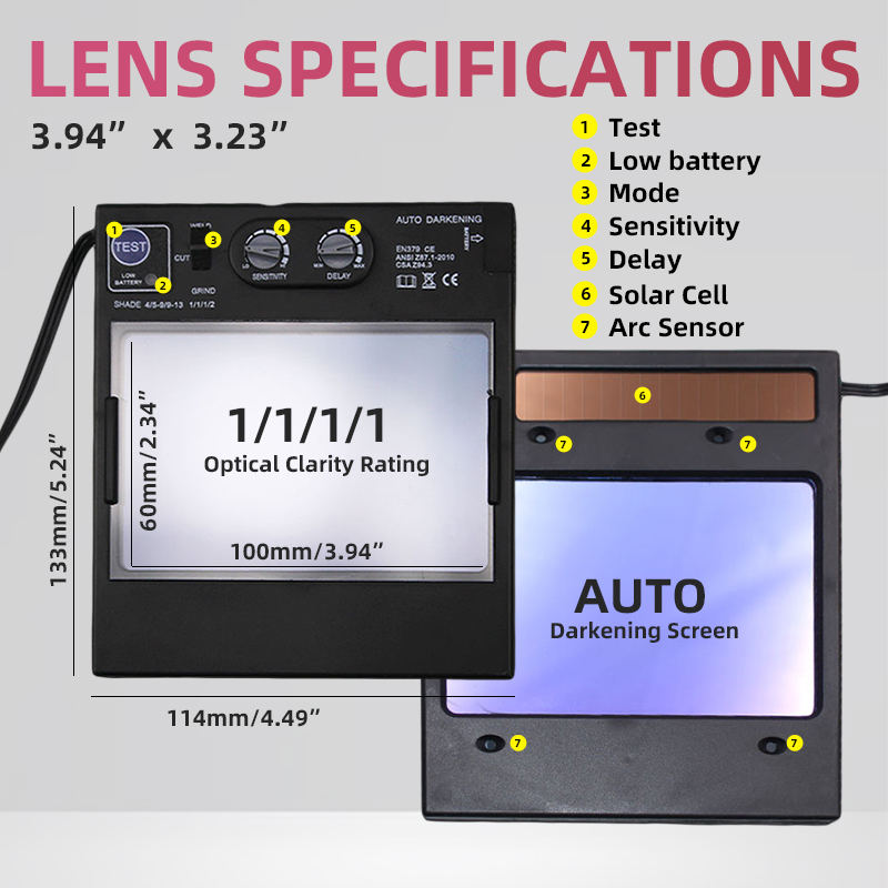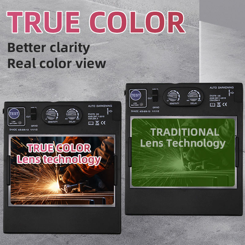 Masque de soudage automatique à grande fenêtre avec 4 capteurs d'arc, assombrissement solaire, vision couleur réelle, pour TIG MIG et meulage