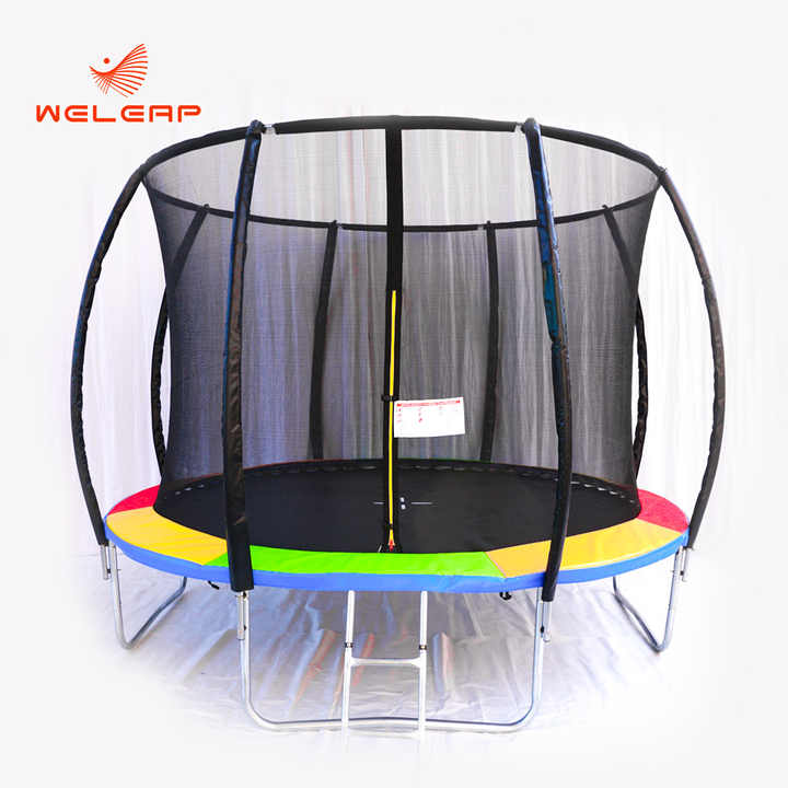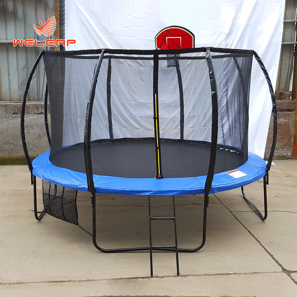 Trampoline Weleap Bungee Poteau incurvé avec panier de basket et échelle Trampoline de 14 pieds avec filet