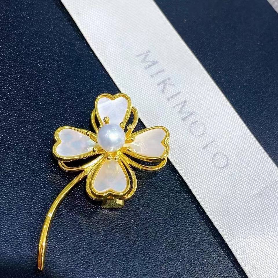 Welfare Style 7mm Akoya Pearl Brooch Pendant Natural White Butterfly Inlaid Mother Pearl Four Leaf Clover Chest Elegant Pins