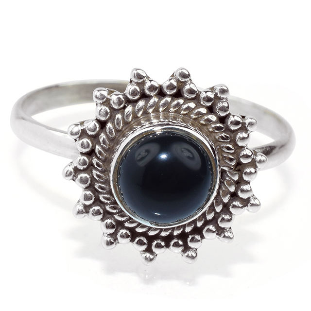 Bagues en argent Sterling 925 Onyx noir de forme ronde, bijoux en argent Sterling en gros
