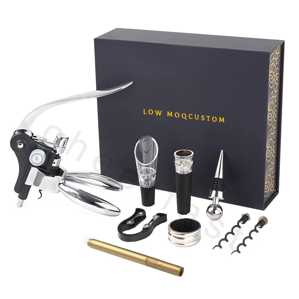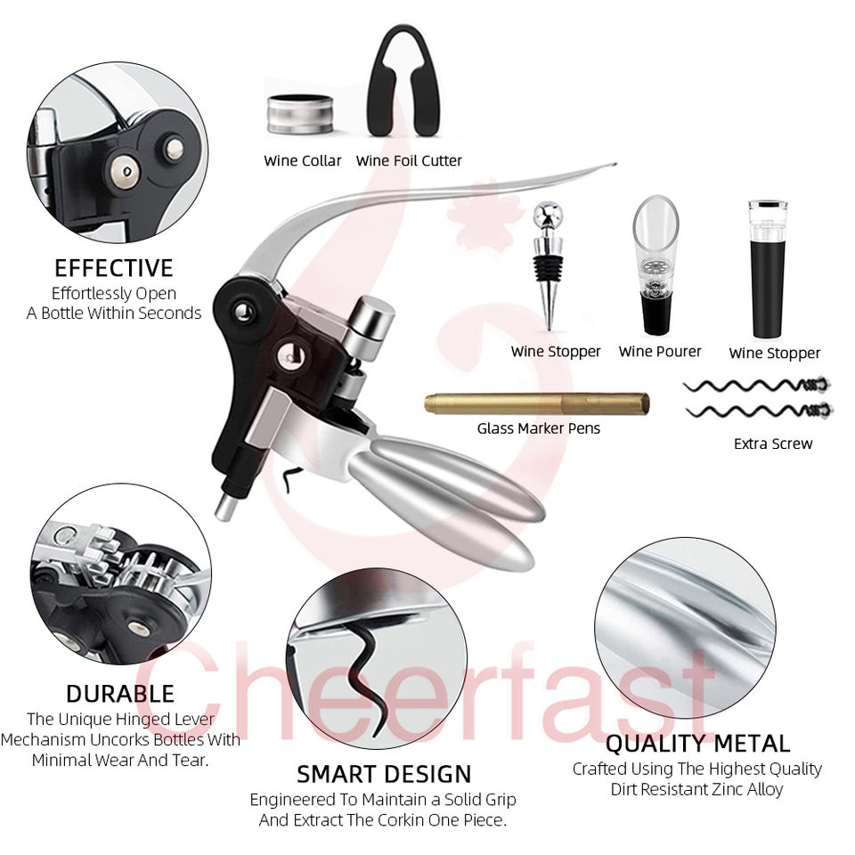Kit de vis en liège de vin rouge bien fait Kit d'ouvre-vin argenté avec coupe-feuille Tire-bouchon à vin Ouvre-bouteille Lapin Coffret cadeau