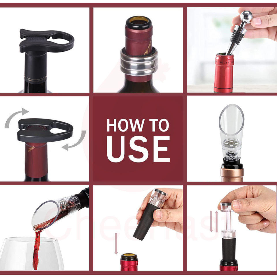 Utilisation:Retirer le bouchon de vin, verser, garder le vin rafraîchir,