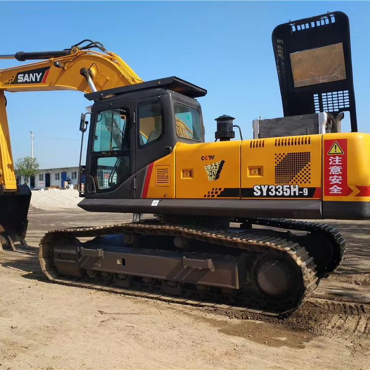 Excavatrice sur chenilles d'occasion bien entretenue Sany SY335H, moteur, équipement de terrassement minier de grande taille, 33,5 tonnes, godet de 1,85 m