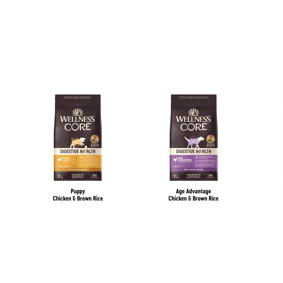 Nourriture sèche pour chiens Wellness, santé digestive, riz brun, petite race, 12 lb