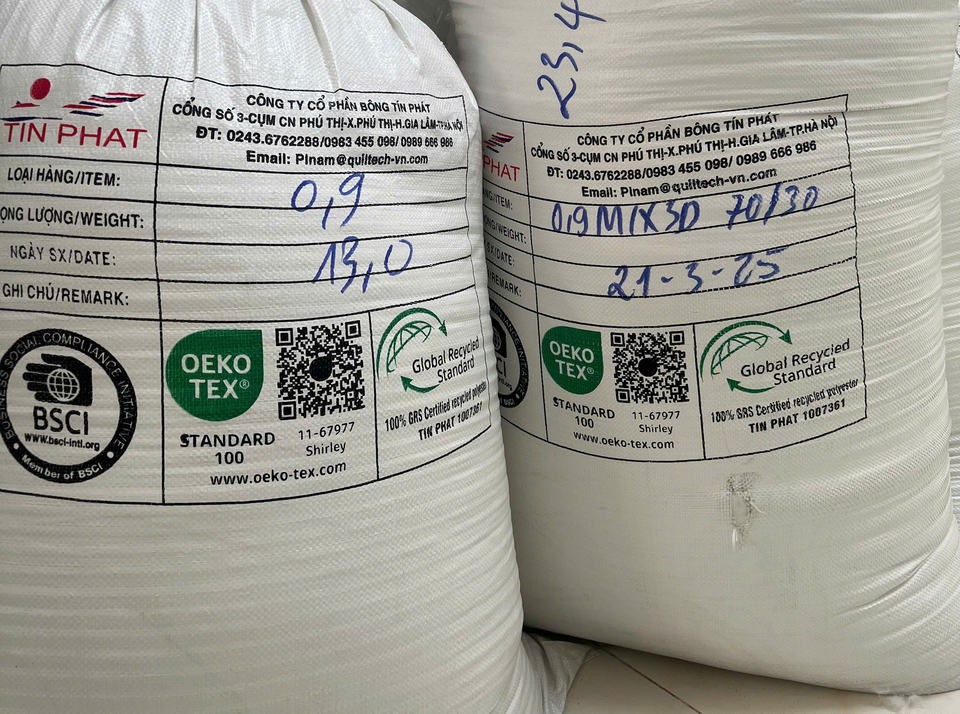 Étain Phat Wellon meilleure qualité blanc 2D MIX 3D REPREVE RATE 50%/50% recyclé vers le bas Vietnam fabrication pas cher prix motif brut B06