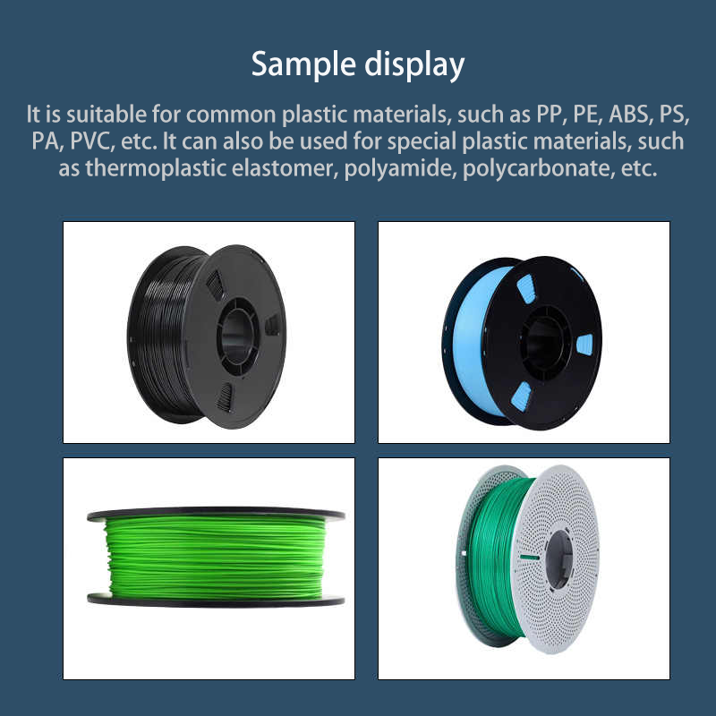 PLA, ABS, PVA, HIPS, fibre d'acétate, bois-plastique, etc.