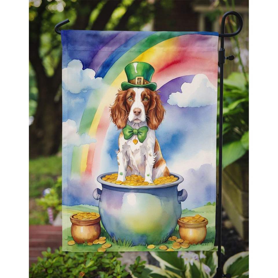 Welsh Springer Spaniel St Patrick's Day Drapeau de jardin Boîte aux lettres multicolore Bannière décorative de cour pour patio Oeuvre de fleurs