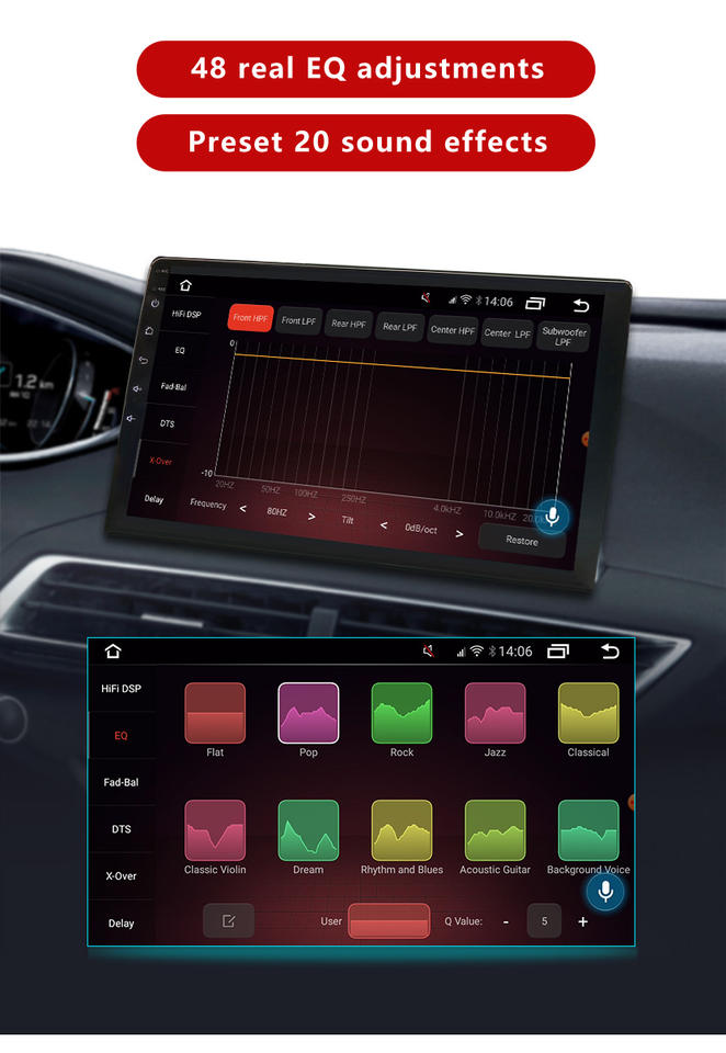 SDK, GPS, Stéréo, SANS MAINS, TPMS, RVB, Télécommande, Amplificateur, OBD2, DSP, CarPlay, DVB +, Lien de miroir, Android auto, Image dans l'image, Microphone intégré, Écran partagé, Gestionnaire de fichiers, Couple Pro, Hi-Res Audio, Volant de voiture de Contrôle, Haut-parleur intégréFonction