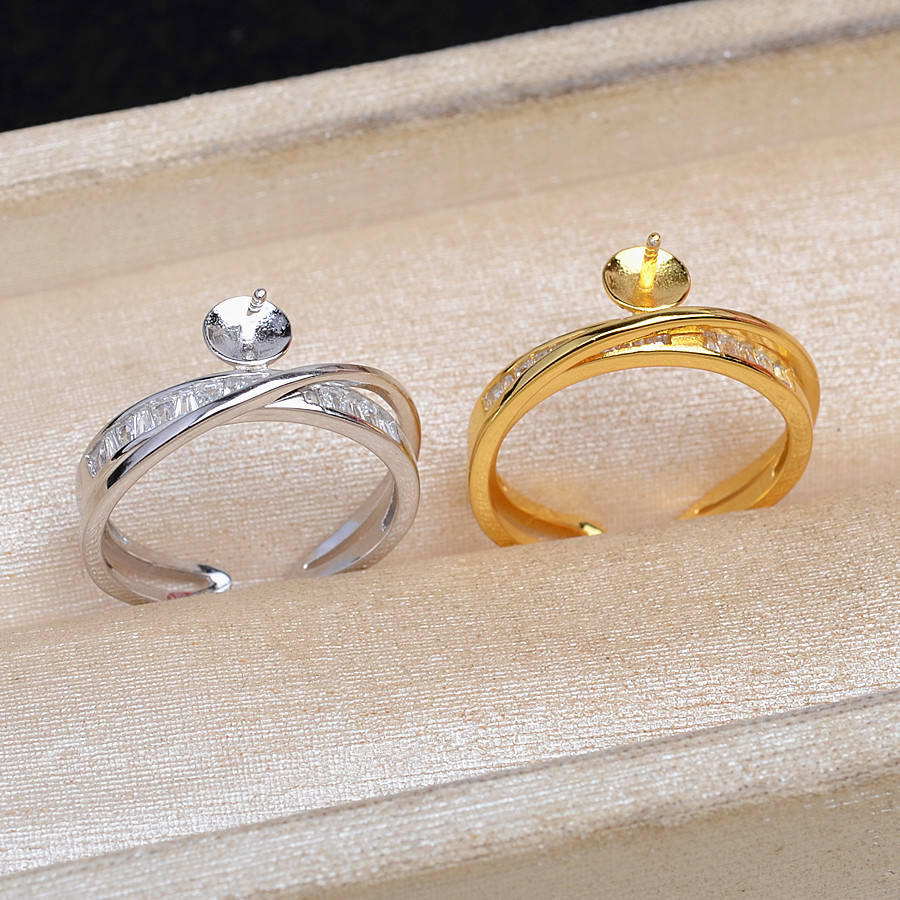 Support de bague ouverte Wenchi DIY, modèle 16608, en argent S925 plaqué or, pour perles de 7-9 mm, 6 mm/8 mm/10 mm