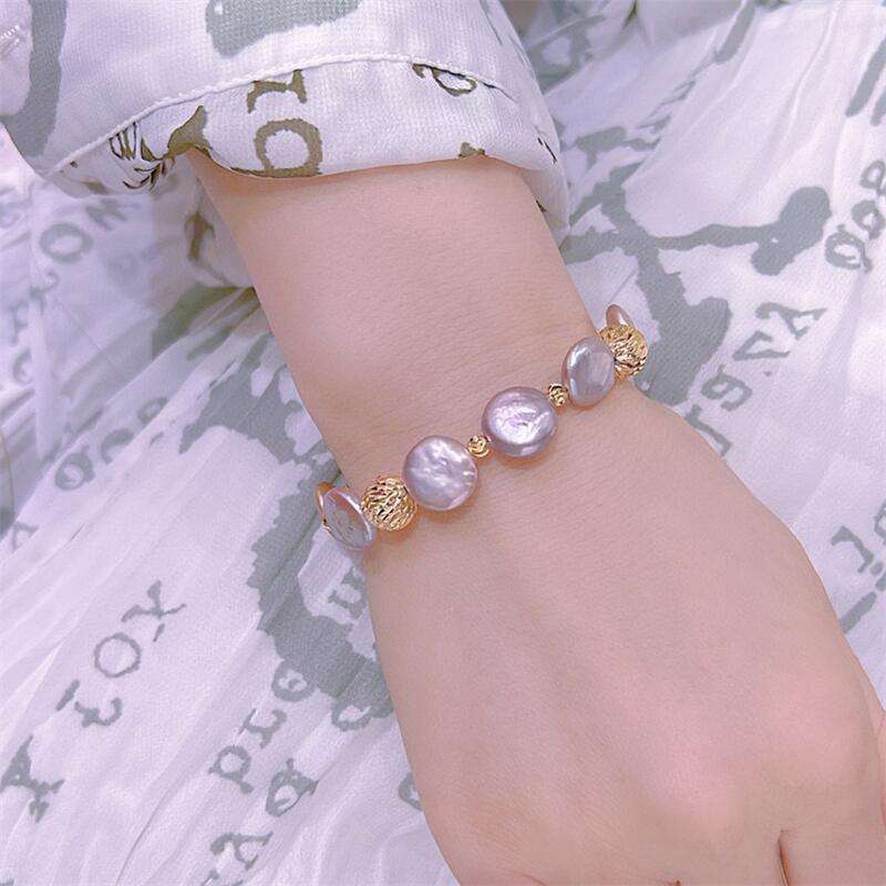 Bracelet de perles en forme de bouton baroque de conception haut de gamme Wenchi, bijoux de mode de luxe léger, modèle tendance rose et violet éblouissant