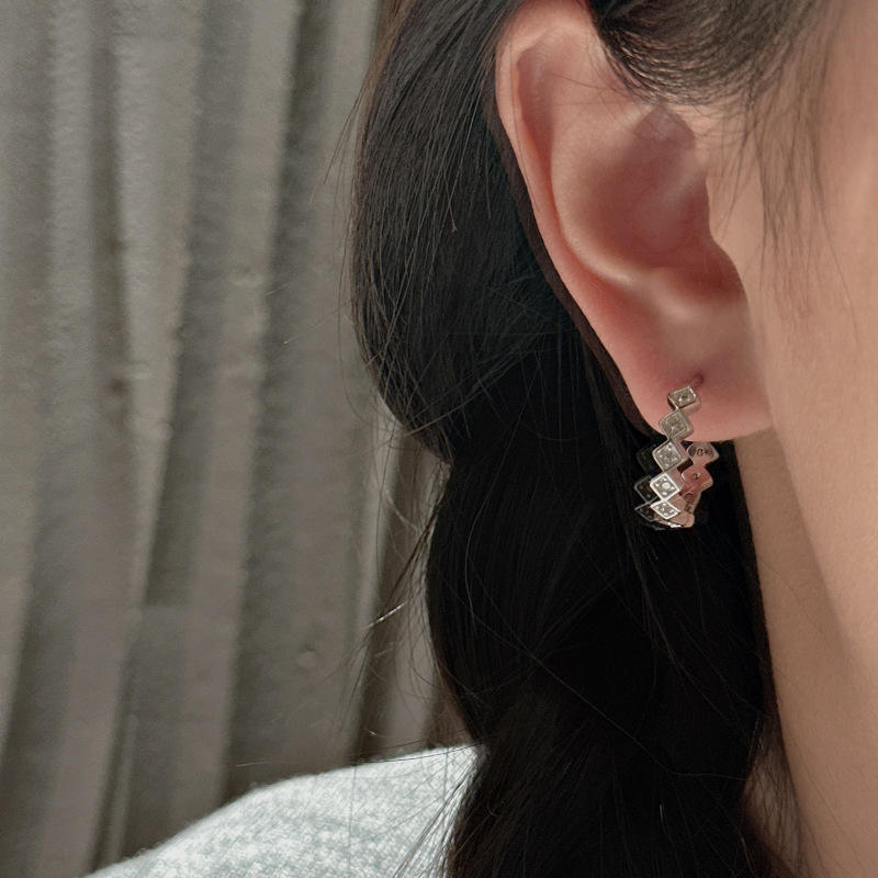 Boucles d'oreilles Wenchi en argent pur S925 avec zircon géométrique, design simple et élégant, style français, design de niche, luxe léger, cristal vintage