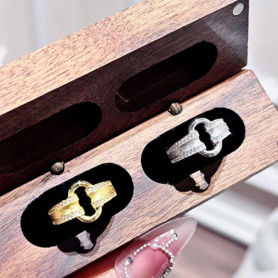 Bague Wenchi S925 en argent pur plaqué or, forme O, finition brossée, style antique de luxe haut de gamme, modèle serti