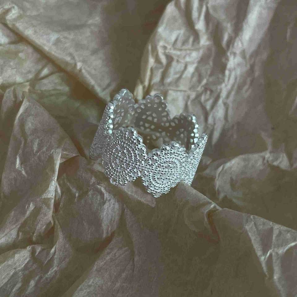 Bague en argent pur S925 Wenchi, style rétro exquis, motif floral ajouré, incrustée, design de niche féminin, luxe léger haut de gamme