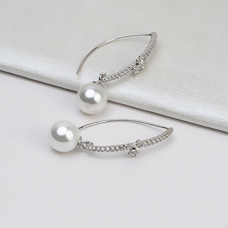 Wenchi S925 Silver DIY Accessories Big Baotou Ear Hook 8-9 Empty Tray for Female Trendy 1759 Semi-Finished Pearl Earrings Model