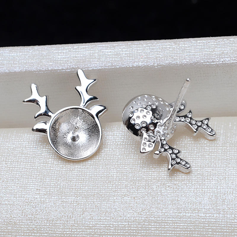 Wenchi S925 Silver Knot Earrings Female Fetal Hair 7-12 Pearl Stud Jewelry DIY Handmade Accessories with Model 16155 Empty Tray