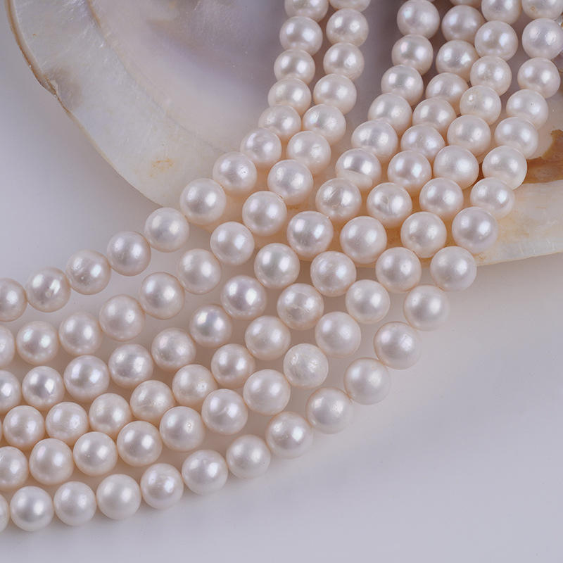 Wenchi Zhuji Pearl Wholesale Natural 8-9mm Bead Necklace White Freshwater Pearls Semi-Finished DIY Handmade Jewelry Model 31061