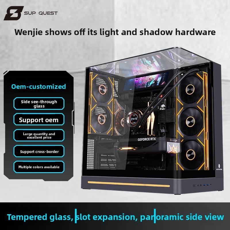 Boîtier d'ordinateur Wenjie Plus Standard Edition, vue sur la mer, boîtier de jeu panoramique latéral transparent, refroidissement par eau, pour eSports