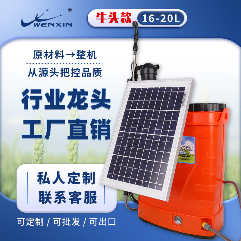 Pulvérisateur solaire Wenxin 20L, batterie au lithium 812mAh, type sac à dos, utilisation agricole, protection des plantes, modèle WXDD-16DS