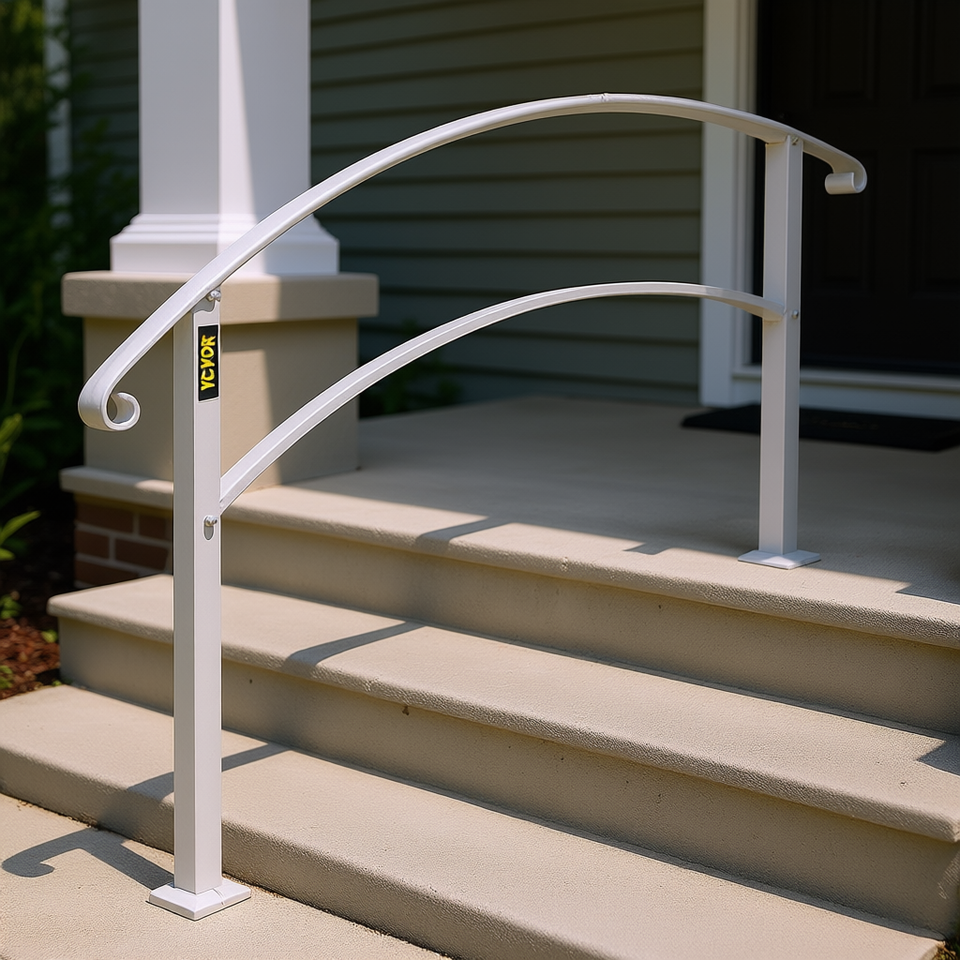 Rampe d'escalier extérieure flexible en fer forgé Weor, 3 marches, blanche, pour marches en béton, style transitionnel