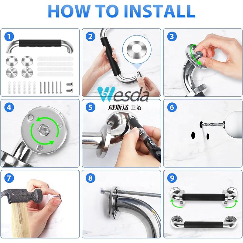 Wesda Barres d'appui antidérapantes en acier inoxydable pour le bain et la douche Rail de toilette pour handicapés pour salles de bain Accessoire pour handicapés