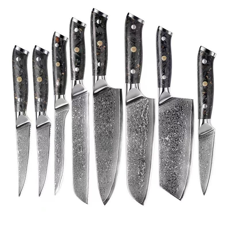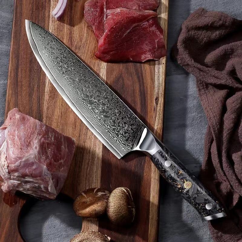 Western Cuisine Master Santoku Knife Set Damascus Steel 8-Inch Multi-Purpose Sharp Kitchen for Vegetables Meat