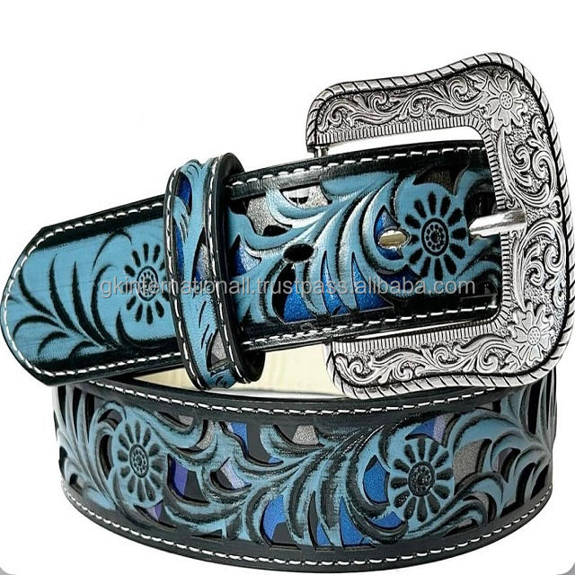 Ceinture d'outillage en cuir de vachette personnalisée de qualité supérieure avec logo en relief floral vintage sculpté à la main