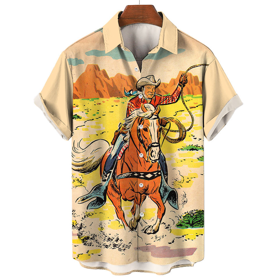 Chemise en jean western pour hommes sweat hawaïen surdimensionné imprimé en 3d décontracté à manches courtes col en v vêtements pour hommes haut quotidien de rue