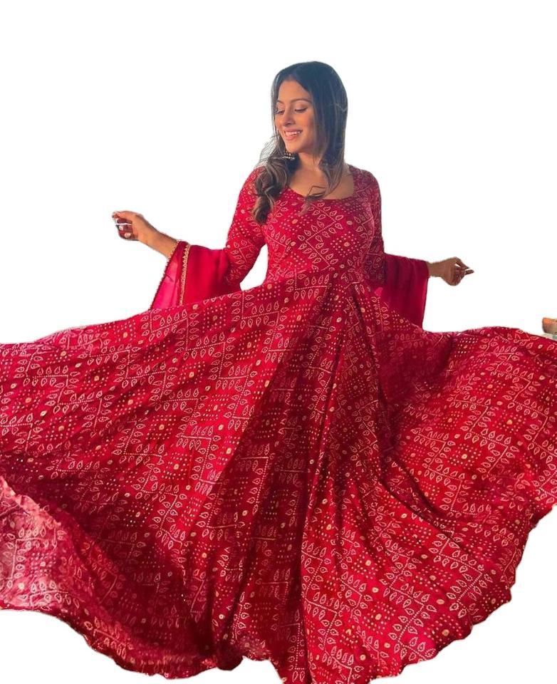 Robe Anarkali imprimée de créateur occidental en soie Butter de qualité supérieure, tenue de soirée et de mariage, entièrement cousue, coupe évasée pour femme