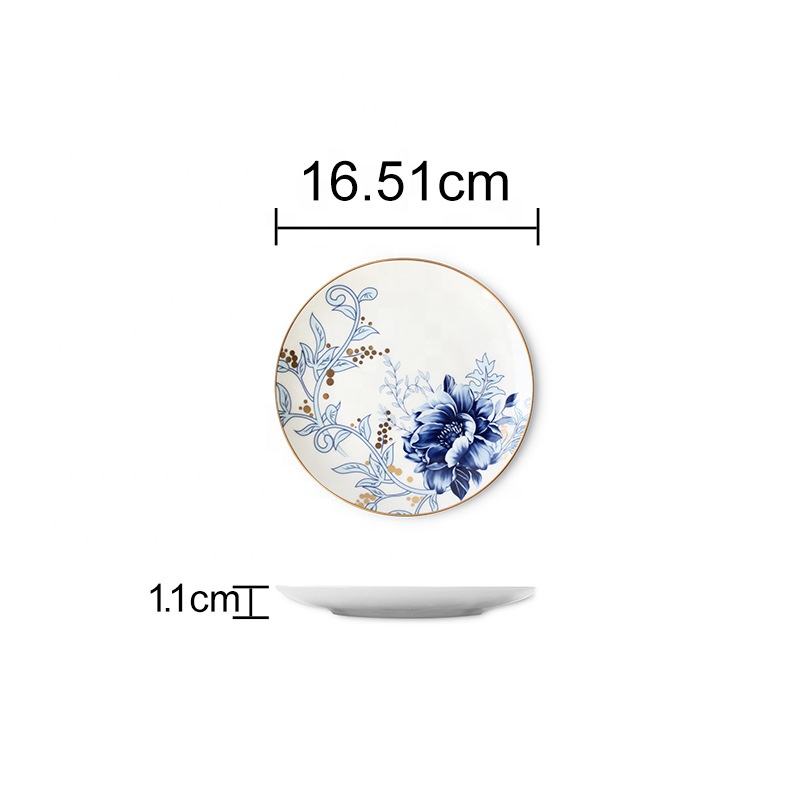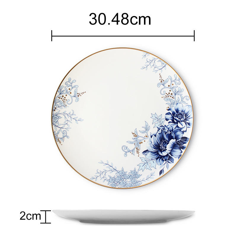 Ensemble de vaisselle occidentale Ensemble de vaisselle classique Assiette de table Céramique Vente en gros Mariage de luxe rond Sur vitrage Ukraine Bleu