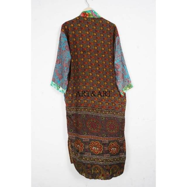 Robe Kimono Longue en Soie Style Occidental Élégant, Motifs Ethniques Vibrants, Ceinture à la Taille, Décoration en Dentelle, Vêtement de Nuit Décontracté