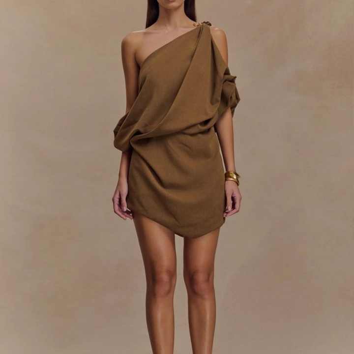 Robe Courte Drapée Ajustée Style Occidental, Formelle, Dos Nu, Élégante, Asymétrique à Une Épaule, Décontractée pour Femme, Idéale pour l'Été