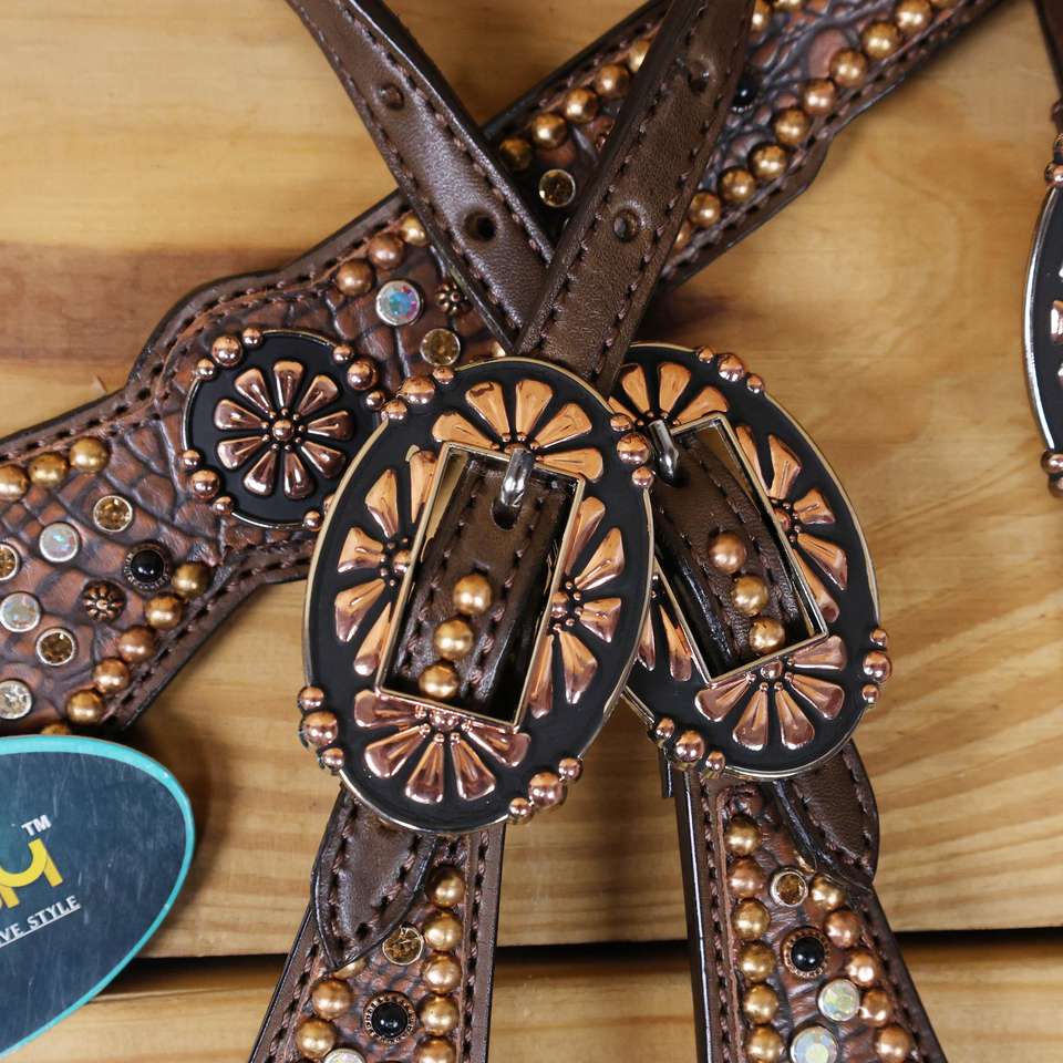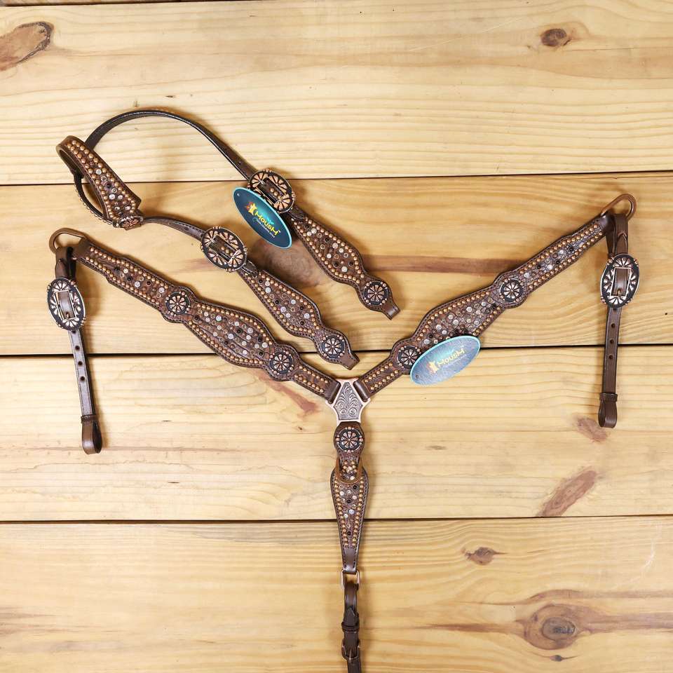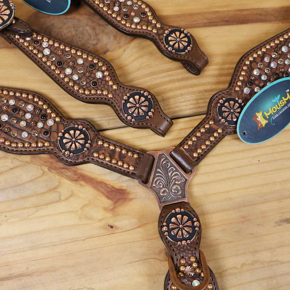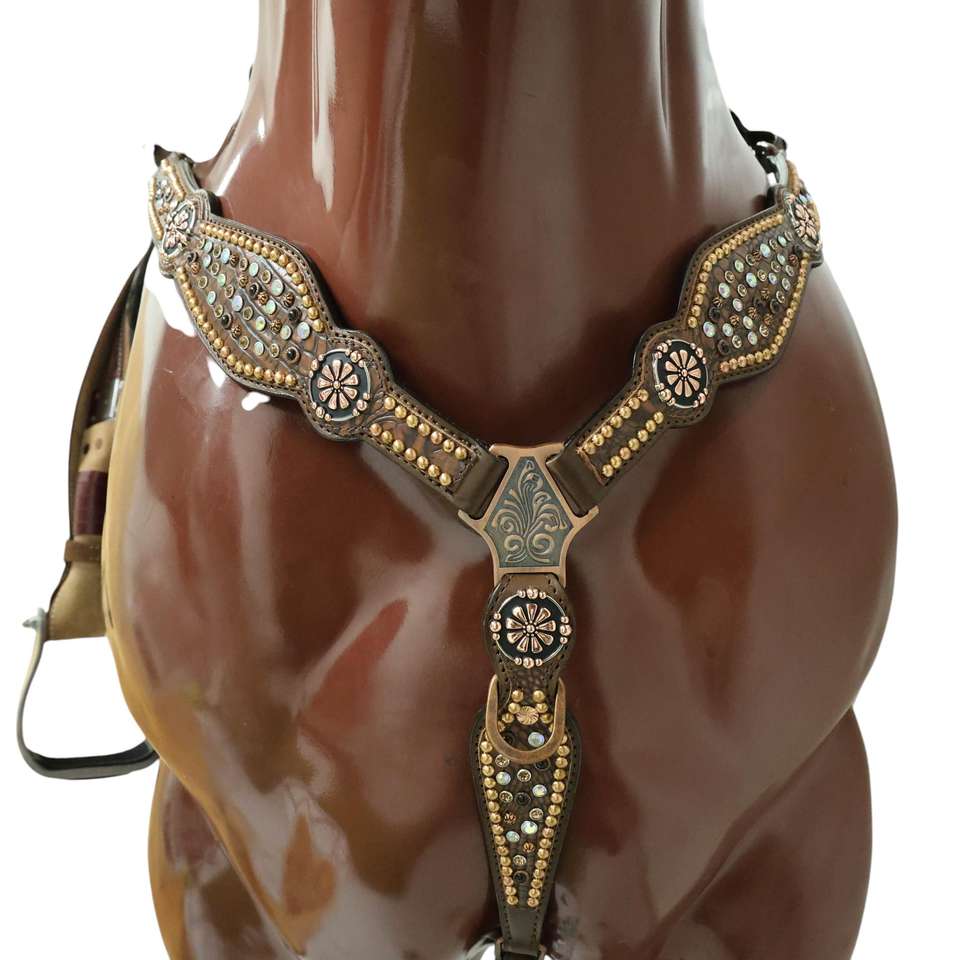 Ensemble de tête et de poitrail pour cheval en cuir véritable occidental, sculpture florale, finition bicolore, haute qualité, multifonctionnel pour l'équitation