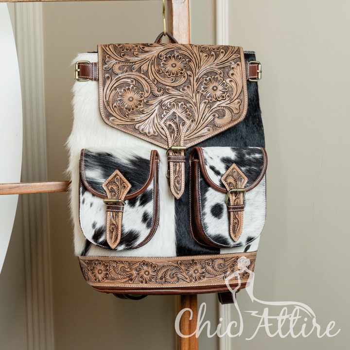 Product name:Hand Tooled Hair On Cowhide Leather Women Backpack