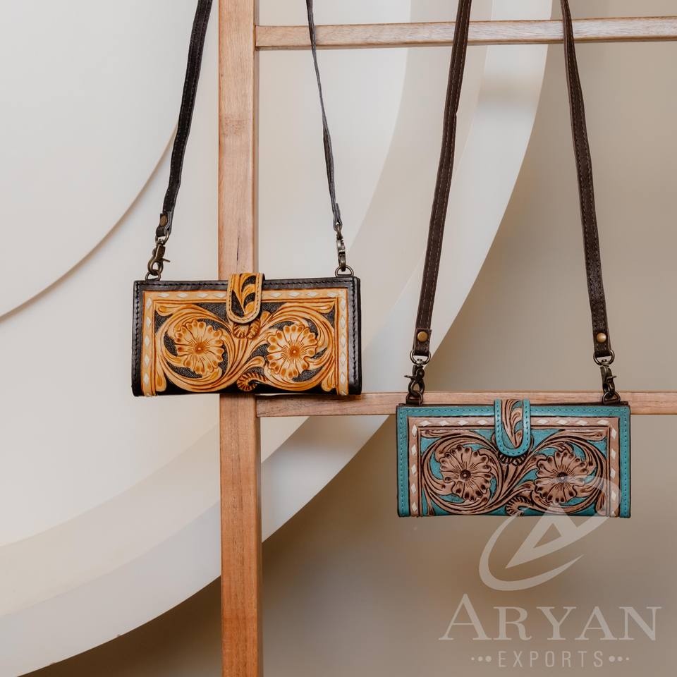 Portefeuille Western en cuir repoussé à la main Portefeuille de luxe en cuir véritable de haute qualité Turquoise Floral en cuir de vachette pour les femmes